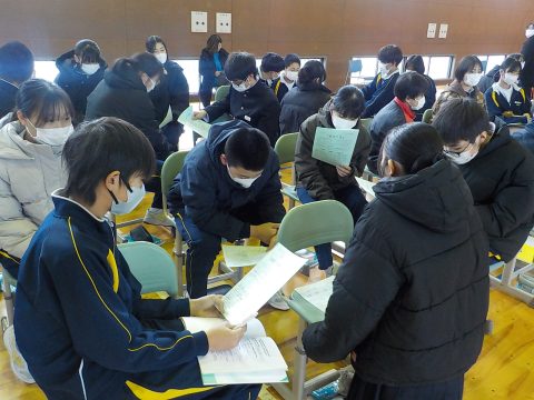 令和8年度新生徒会のリーダー研修会が行われました。先日選出された新執行部の1,2年生は、リーダーとして必要な考え方やつけるべき力などについて、校長先生や担当の先生方からの話を真剣に聞きながら考えました。今の自分としっかり向き合い、まず自分を知ること。相手の思いを大切にすること。最高のフォロワーであること。そして目標を共有して高みを目指す。やる気に満ちあふれた後ろ姿に、宮中生徒会が大切にしてきたものを感じました。まごころをつなぎ、新たな伝統をつくる12月です。