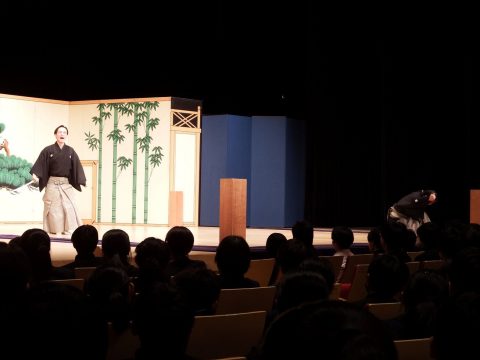 今日の午後、芸術鑑賞教室がありました。日本の伝統芸能「狂言」を鑑賞しました。鑑賞だけでなく、歌を歌ったり、鳴き声クイズをしたりと、狂言がとても身近に感じることができ、とても楽しい時間を過ごしました。
