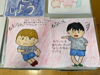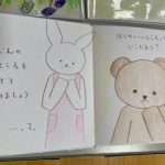 3年生の保育の実習のために作成した絵本。工夫を凝らしたそれぞれの作品から温かさや願い、いろんな思いが伝わる素敵な作品ばかりです。わたしも読み聞かせをしてもらいたいなあ、とほっこりした朝です。