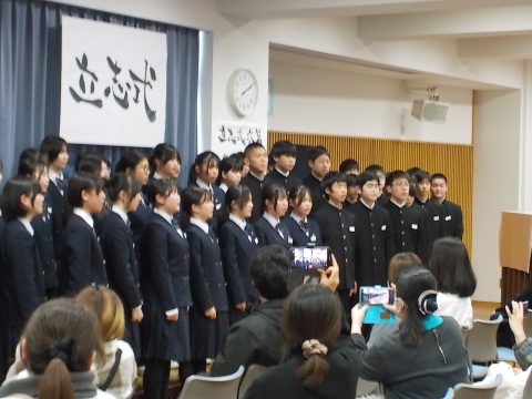 今日の5時間目、3年生は卒業式の合唱曲決め、2年生は立志式の練習と合唱練習、1年生は進路学習でした。気が付くともう2月も半ば。春へ向かって歩を進める宮中生です。