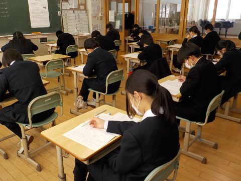 1,2年生は実力テスト、後期入試を終えた3年生は今日から卒業式練習です。今年度もあと一週間。一日一日を大切にしていきたいと思います。