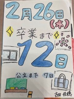 3年生の教室には、一人一人の思いがこもった素敵なカウントダウン日めくりカレンダーが飾ってあります。残すところあと数枚・・・。カウントダウンカレンダーの残りが少なくなればなるほど、増えるみんなの思い出♪