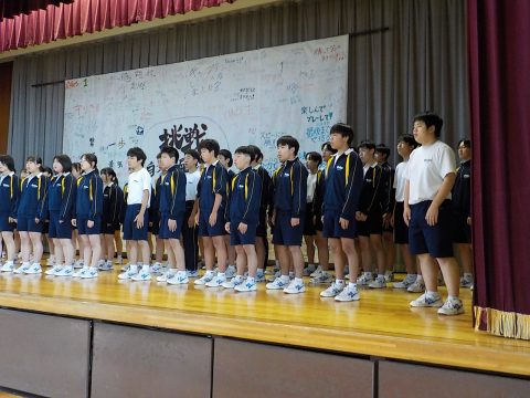 10月14日(火)市合同音楽祭・体育祭にむけて Posted on 2025年10月14日2025年10月14日 by miyatyu 6時間目は、市合同音楽祭にむけての3年生の発表と、軍ごとの体育祭練習を行いました。合唱の素晴らしさはもちろんのこと、リーダーとして練習をしっかり引っ張る3年生の姿を頼もしく感じます。実り豊かに・・・。