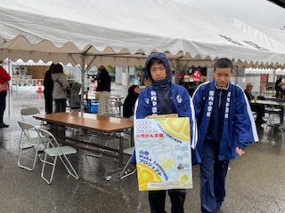 26日(日)はあいにくの雨模様でしたが、漆山地区おりはた祭りでNAFのレモネードスタンドを行いました。人出があまり多くなかったのですが、地域の方々がすすんで買ってくださいました。たくさん屋台のおいしいものもごちそうになり、心もお腹もあったかくなりました。無事完売し、活動を終えることができました。ありがとうございました。