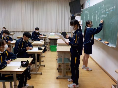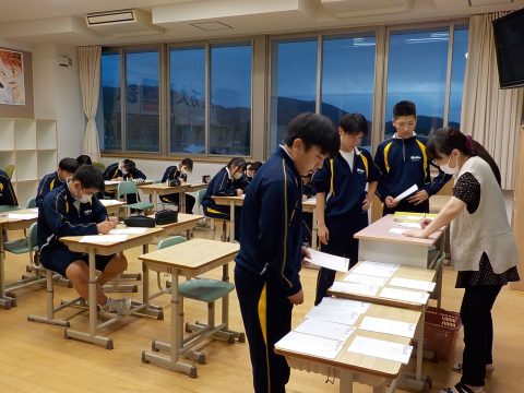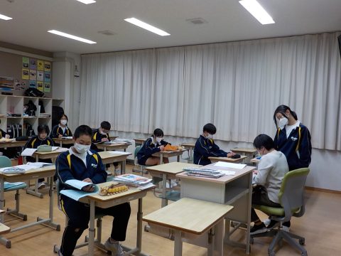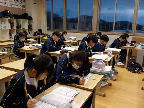 10月28日(火)それぞれのやり方で・・ テスト3日前の学習会です。クラスで問題を解きあい解説しあったり、一人で黙々やったり、わからないことを教えあったり、それぞれのやり方で学ぶことのできる宮中生です。