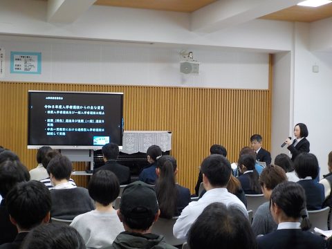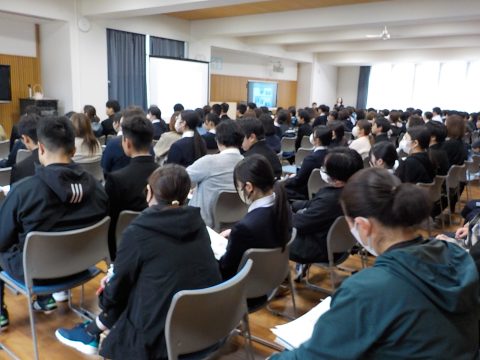 令和8年度の高校入試や進学後の学びについて県教育局の方からお話をお聞きしました。その後、学年主任から出願や申請等の具体的な説明を行いました。入試制度が大きく変わりますが、家族の理解
