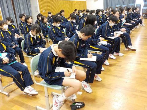 6時間目、1年生はスクールカウンセラーの福地先生から「中学生のこころとからだ・ストレスについて考えてみよう」というテーマで、お話をお聞きしました。思春期真っただ中の自分を客観的に見つめなおしたり、ストレスとうまく付き合っていく方法について分かりやすくお話をしていだだきました。心身とも大きく変化し成長する中学3年間。自分を知り、うまく調整しながらみんなで力を伸ばしていきたいと思います。